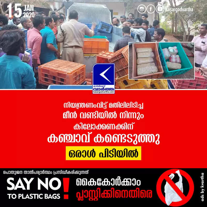 Keywords: Kasaragod, Kerala, news, Ganja, Lorry, Fish Lorry, Police, custody, Ganja seized from Fish lorry; One in Police custody