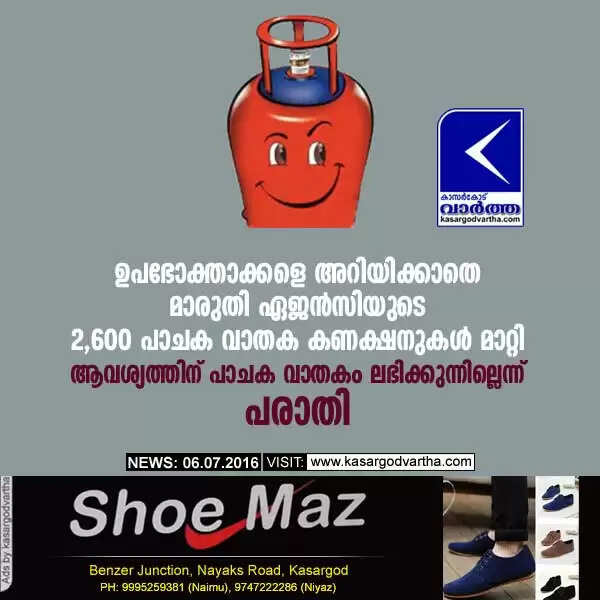 ഉപഭോക്താക്കളെ അറിയിക്കാതെ മാരുതി ഏജന്സിയുടെ 2,600 പാചക വാതക കണക്ഷനുകള് മാറ്റി; ആവശ്യത്തിന് പാചക വാതകം ലഭിക്കുന്നില്ലെന്ന് പരാതി
