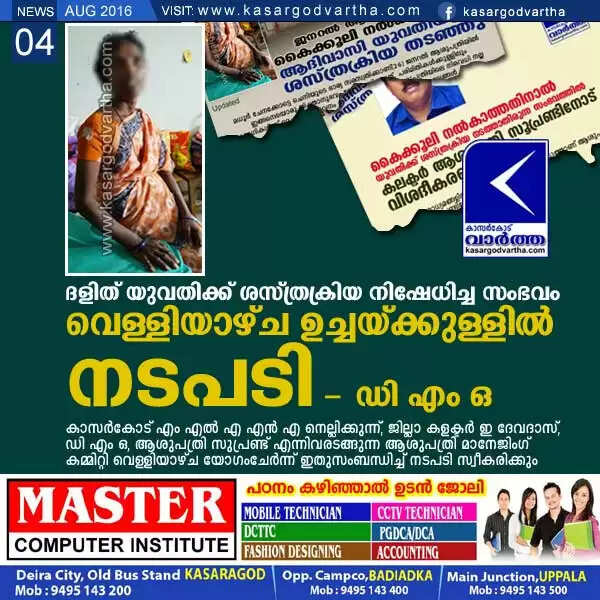 ദളിത് യുവതിക്ക് ശസ്ത്രക്രിയ നിഷേധിച്ച സംഭവം: വെള്ളിയാഴ്ച ഉച്ചയ്ക്കുള്ളില് നടപടി - ഡി എം ഒ
