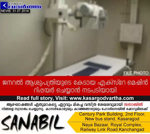 Keywords: Kasaragod, Kerala, General hospital, X-ray machine, repair, Complained, General hospital X-ray machine to be repaired.