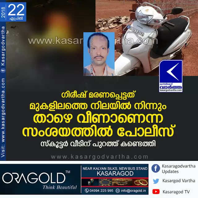 ഗിരീഷ് മരണപ്പെട്ടത് മുകളിലത്തെ നിലയില് നിന്നും താഴെ വീണാണെന്ന സംശയത്തില് പോലീസ്; സ്കൂട്ടര് വീടിന് പുറത്ത് കണ്ടെത്തി
