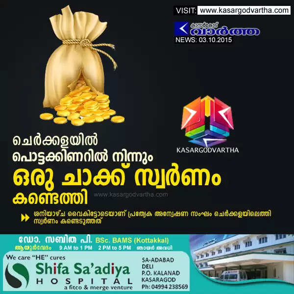 ചെര്‍ക്കളയില്‍ പൊട്ടക്കിണറില്‍ നിന്നും ഒരു ചാക്ക് സ്വര്‍ണം കണ്ടെത്തി