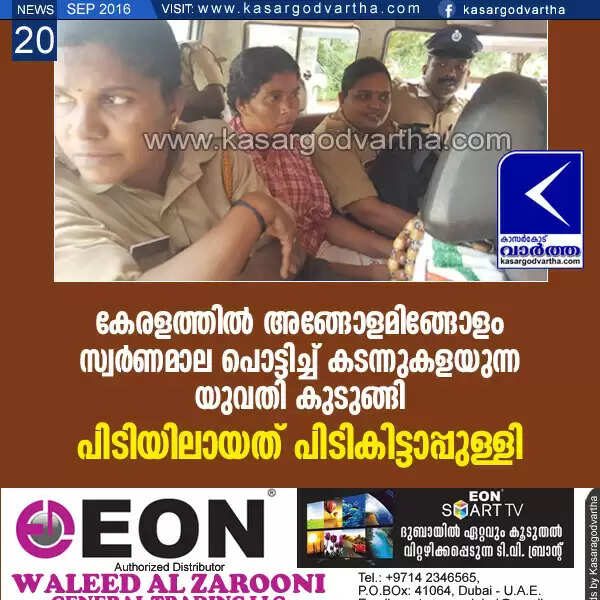 കേരളത്തില് അങ്ങോളമിങ്ങോളം സ്വര്ണമാല പൊട്ടിച്ച് കടന്നുകളയുന്ന യുവതി കുടുങ്ങി; പിടിയിലായത് പിടികിട്ടാപ്പുള്ളി