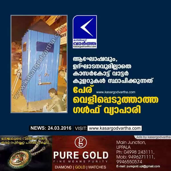 ആഘോഷവും, ഉദ്ഘാടനവുമില്ലാതെ കാസര്കോട്ട് വാട്ടര് കൂളറുകള് സ്ഥാപിക്കുന്നത് പേര് വെളിപ്പെടുത്താത്ത ഗള്ഫ് വ്യാപാരി