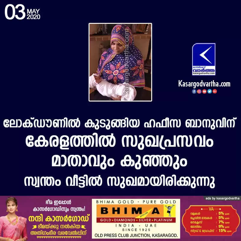 ലോക്ഡൗണില് കുടുങ്ങിയ ഹഫീസ ബാനുവിന് കേരളത്തില് സുഖപ്രസവം; മാതാവും കുഞ്ഞും സ്വന്തം വീട്ടില് സുഖമായിരിക്കുന്നു