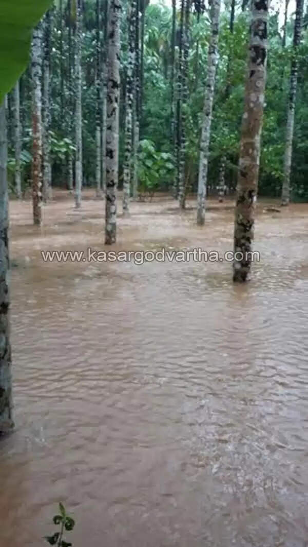 വിവിധ ഭാഗങ്ങളില് പാടങ്ങളിലും വെള്ളം കയറിയിട്ടുണ്ട്. ഈ ഭാഗങ്ങളിലെ വീടുകളിലും വെള്ളം കയറി. ചാലുകളിലും വെള്ളം കയറി കവിഞ്ഞൊഴുകുന്നുണ്ട്. കനത്ത മഴയില് എരിയാലിലെ റാഫിയുടെ വീട്ടു മതില് തകര്ന്നു.