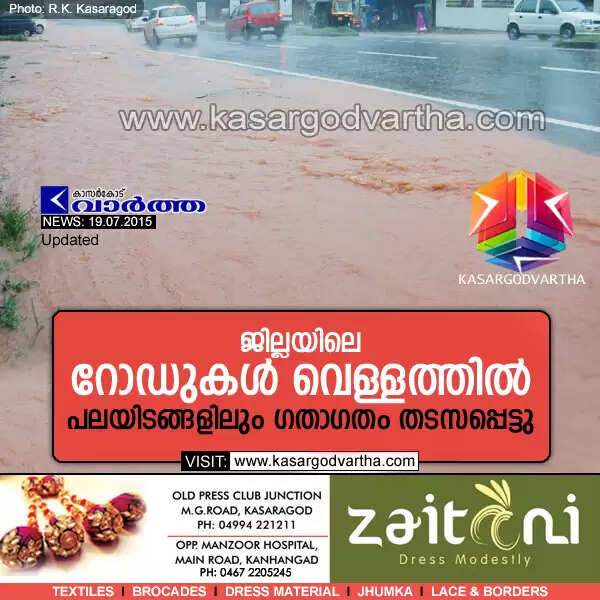 ജില്ലയിലെ റോഡുകള് വെള്ളത്തില്; പലയിടങ്ങളിലും ഗതാഗതം തടസപ്പെട്ടു