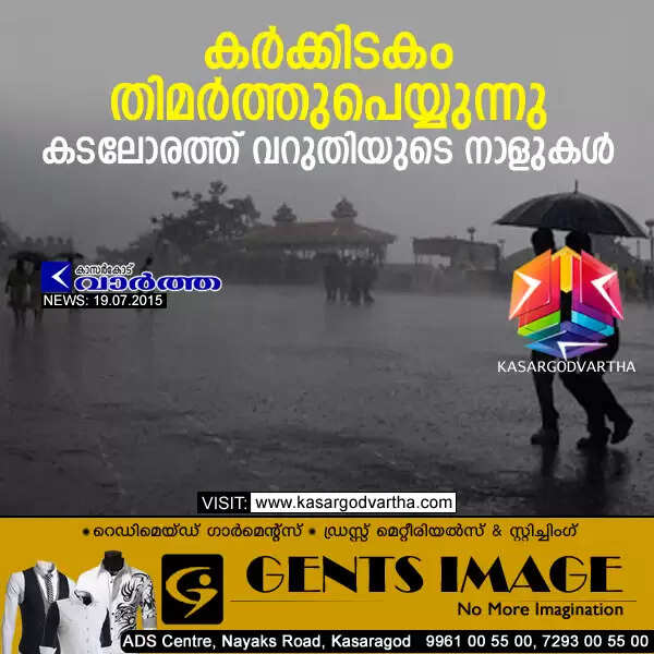 കാസര്‍കോട്: (www.kasargodvartha.com 19/07/2015) കര്‍ക്കിടകത്തിന്റെ ആഗമനം തിമര്‍ത്ത് പെയ്യുന്ന മഴയോടെ. കാലവര്‍ഷം പതിയെ അതിന്റെ സംഹാരസ്വഭാവത്തിലെത്തുകയാണ്. ഇതോടെ അപകടങ്ങളും അപകടമരണങ്ങളും വര്‍ദ്ധിച്ചു. ദാരിദ്രമകറ്റാന്‍ രാമായണപാരായണം ഉപകരിക്കുമെന്ന വിശ്വാസത്തോടെ ഹൈന്ദവസമൂഹം രാമായണമാസം ആചരിക്കുന്നതും കര്‍ക്കിടകത്തിലാണ്. കടലോരവാസികളാണ് ഈ മാസത്തില്‍ ഏറ്റവും കൂടുതല്‍ കഷ്ടപ്പാട് അനുഭവിക്കുന്നത്. കര്‍ക്കിടകമാസത്തില്‍ മഴ കനക്കുമ്പോള്‍ കടലില്‍ മല്‍സ്യബന്ധനം നടത്താന്‍ കഴിയാത്ത സാഹചര്യമുണ്ടാകുന്നു.