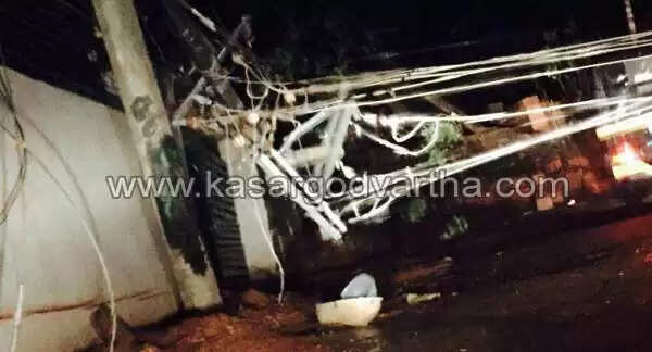 കാസര്‍കോട് എ ആര്‍ ക്യാമ്പിലും ഇലക്ട്രിക് പോസ്റ്റ് ഒടിഞ്ഞു വീണു. ഇതേതുടര്‍ന്ന് തിരഞ്ഞെടുപ്പ് ഡ്യൂട്ടിയിലുള്ള ഉദ്യോഗസ്ഥര്‍ക്ക് സഞ്ചരിക്കേണ്ട വാഹനങ്ങള്‍ പുറത്ത് കടക്കാനാവാതെ കുടുങ്ങിക്കിടക്കുകയാണ്.