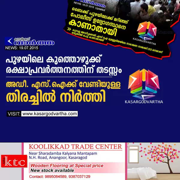 Keywords: Kasaragod, Kerala, Missing, River, Fire force, Police, Family, Natives, Searching, Heavy rain: Search for SI stopped temporally.