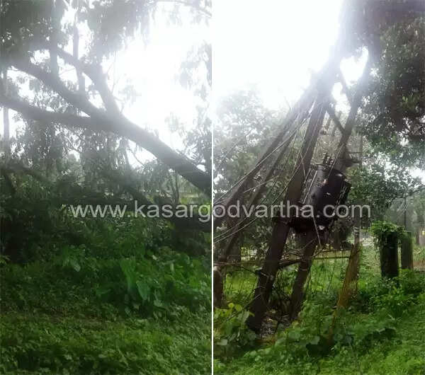 Keywords: Kasaragod, Kerala, news, Uppala, Electric post, Transformer, Heavy wind; Electric post and Trees collapsed