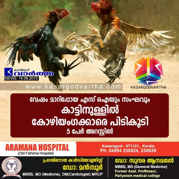 വേഷം മാറിപ്പോയ എസ് ഐയും സംഘവും കാട്ടിനുള്ളില് കോഴിയംഗക്കാരെ പിടികൂടി; 5 പേര് അറസ്റ്റില്