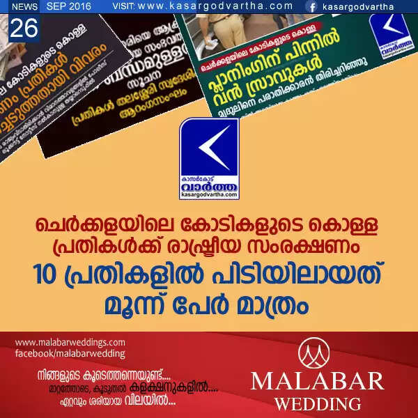 ചെര്ക്കളയിലെ കോടികളുടെ കൊള്ള: നേരിട്ട് പങ്കാളികളായ രണ്ട് പേര് അറസ്റ്റില്; പണത്തിന് വേണ്ടി കൂത്തുപറമ്പ് മേഖലകളില് റെയ്ഡ്