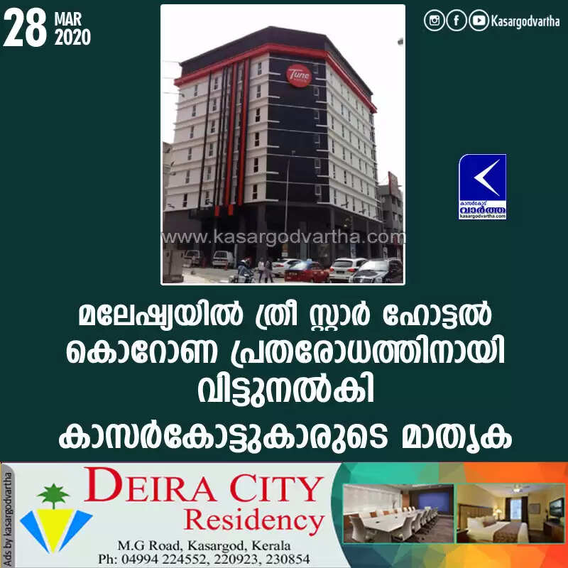 Keywords: Kasaragod, News, Hotel, Natives, Treatment, Hotel gives by Kasaragod natives in Malaysia for Corona treatment