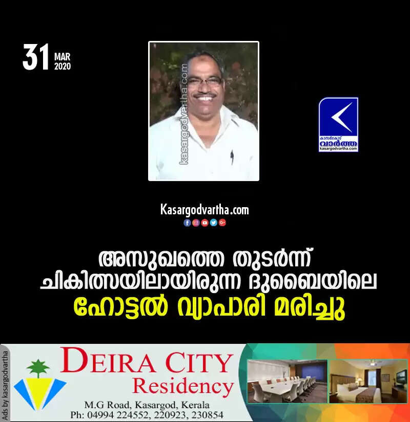 അസുഖത്തെ തുടര്ന്ന് ചികിത്സയിലായിരുന്ന ദുബൈയിലെ ഹോട്ടല് വ്യാപാരി മരിച്ചു