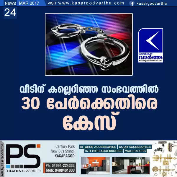 വീടിന് കല്ലെറിഞ്ഞ സംഭവത്തില്‍ 30 പേര്‍ക്കെതിരെ കേസ്