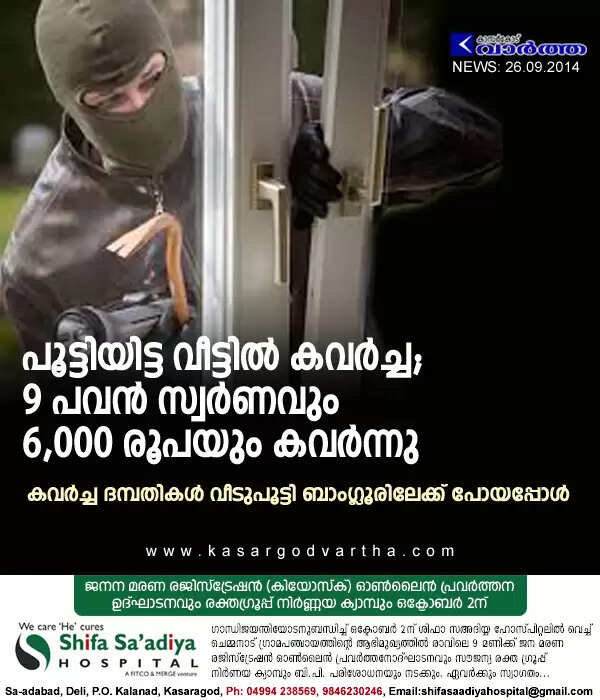 Keywords: Kasaragod, Robbery, Theft, Kudlu, Kerala, House burglary in Kudlu.