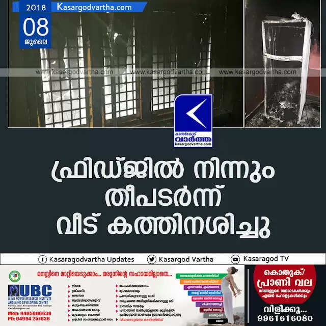 Keywords: Kasaragod, Kerala, news, Kolathur, fire, House burned after fire spread from Fridge