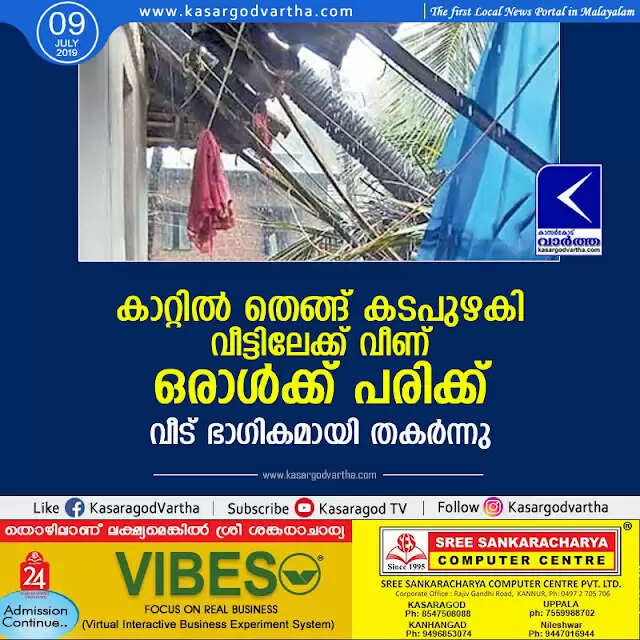 Keywords: Kasaragod, Kerala, news, House, Coconut, collapse, House collapsed after coconut tree fell down