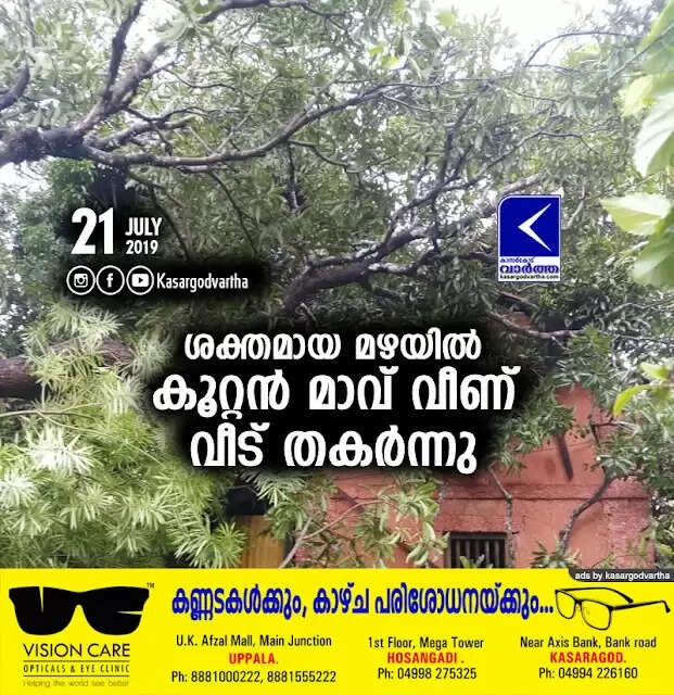 Keywords:  Kasaragod, Kerala, news, House, Rain, House collapsed after tree fell