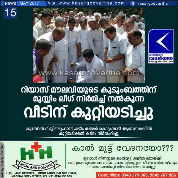 Keywords : Kasaragod, House, Muslim-league, Foundation stone, Riyas Maulavi, Kurge, House for Riyas Maulavi foundation stone laid.