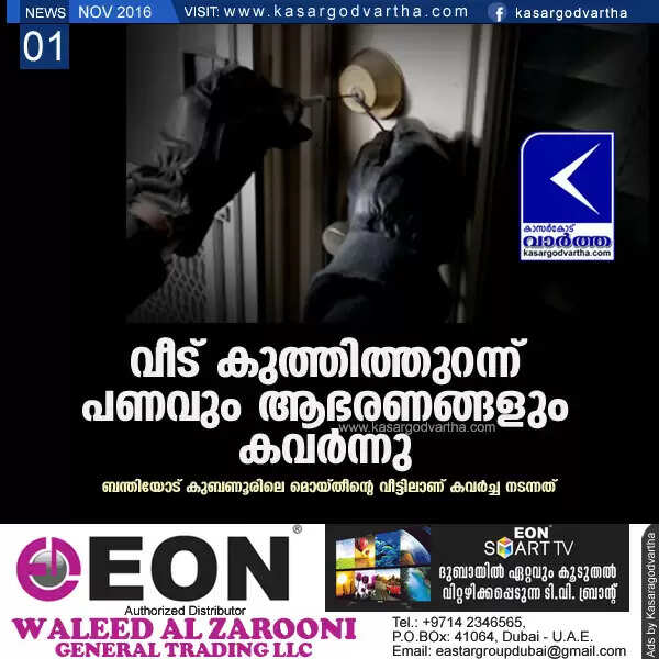 Keywords: Kasaragod, Kumbala, House, Cash, Robbery, Police, Case, Ornaments, Family, Door, Complaint.
