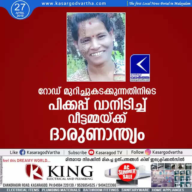 Keywords:  Kasaragod, Kerala, news, Kumbala, Death, Accidental-Death, House wife died after Pick up Van hit