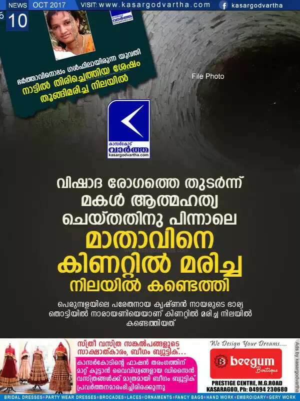 വിഷാദ രോഗത്തെ തുടര്ന്ന് മകള് ആത്മഹത്യചെയ്തതിനു പിന്നാലെ മാതാവിനെ കിണറ്റില് മരിച്ച നിലയില് കണ്ടെത്തി