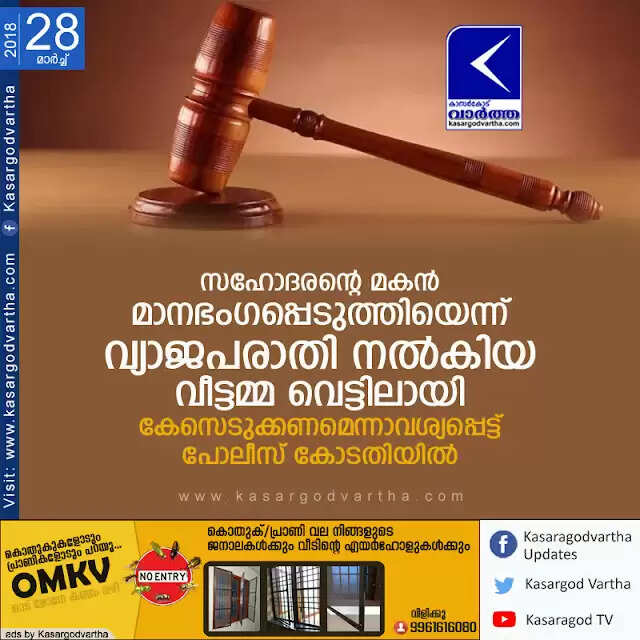സഹോദരന്റെ മകന് മാനഭംഗപ്പെടുത്തിയെന്ന് വ്യാജപരാതി നല്കിയ വീട്ടമ്മ വെട്ടിലായി; കേസെടുക്കണമെന്നാവശ്യപ്പെട്ട് പോലീസ് കോടതിയില്