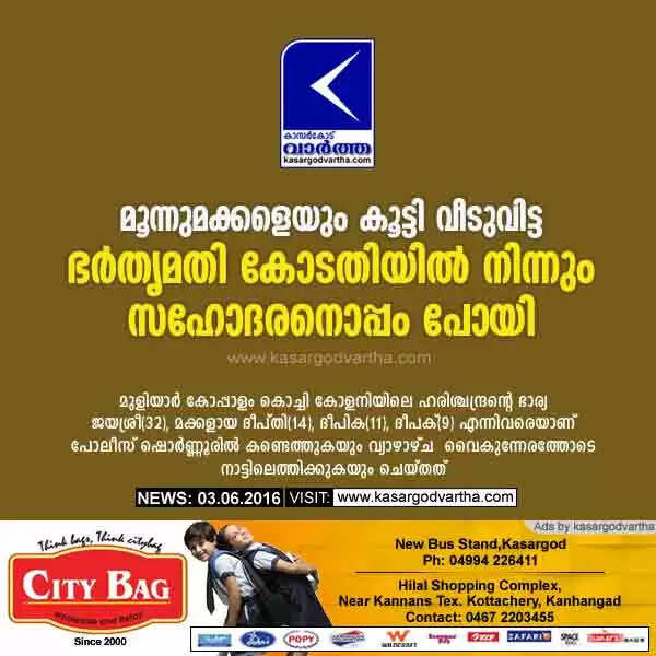 മൂന്നുമക്കളെയും കൂട്ടി വീടുവിട്ട ഭര്തൃമതി കോടതിയില് നിന്നും സഹോദരനൊപ്പം പോയി