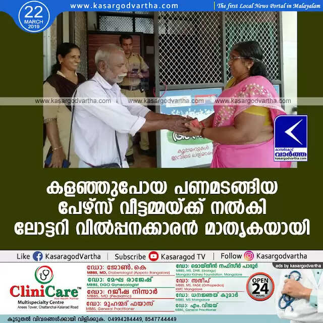 Keywords: House wife's purse returns by Lottery seller, Kanhangad, Kasaragod, News, Lottery Agnet, Housewife.