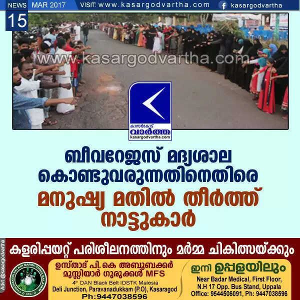 ബീവറേജസ് മദ്യശാല കൊണ്ടുവരുന്നതിനെതിരെ മനുഷ്യ മതില് തീര്ത്ത് നാട്ടുകാര്