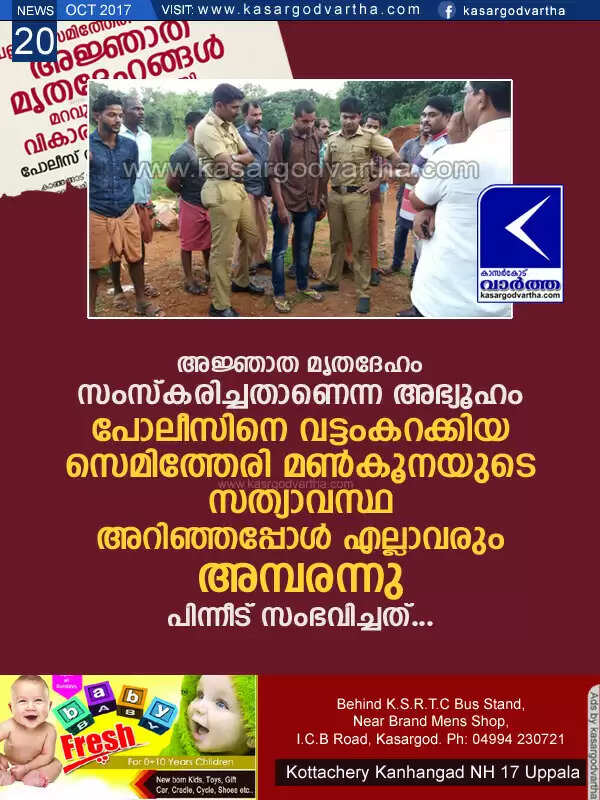അജ്ഞാത മൃതദേഹം സംസ്കരിച്ചതാണെന്ന അഭ്യൂഹം; പോലീസിനെ വട്ടംകറക്കിയ സെമിത്തേരി മണ്കൂനയുടെ സത്യാവസ്ഥ അറിഞ്ഞപ്പോള് എല്ലാവരും അമ്പരന്നു; പിന്നീട് സംഭവിച്ചത്...