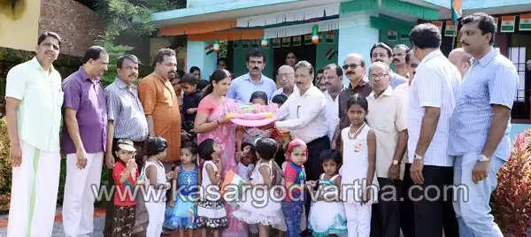| കാഞ്ഞങ്ങാട് ലയണ്സ് ക്ലബിന്റെ നേതൃത്വത്തില് സ്വാതന്ത്ര്യദിനാഘോഷത്തില് മേലാങ്കോട് അംഗണ്വാടി കുട്ടികള്ക്ക് കളിക്കോപ്പുകള് പ്രസിഡണ്ട് ഇ. രാജേന്ദ്രന് നല്കുന്നു |