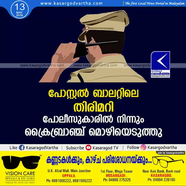 Keywords: News, Kasaragod, Kerala, Police, Investigation, Complaint, Irregularities in postal ballots; Cops questioned by Crime Branch
