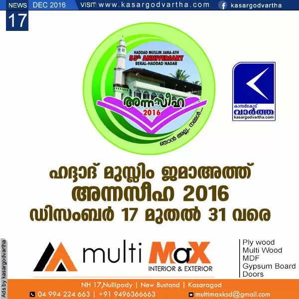 Keywords: Kasaragod, Bekal, Jamaath-committe, Annaseeha 2016, Haddad jama-ath Islamic preaching December 17-31.