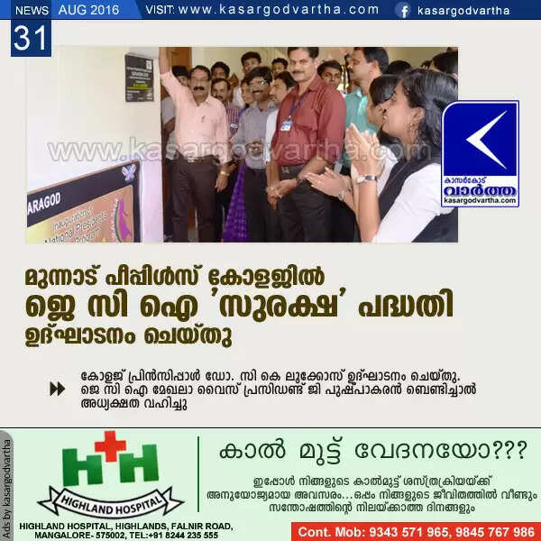 മുന്നാട് പീപ്പിള്‍സ് കോളജില്‍ ജെ സി ഐ 'സുരക്ഷ' പദ്ധതി ഉദ്ഘാടനം ചെയ്തു