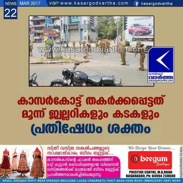 കാസര്കോട്ട് തകര്ക്കപ്പെട്ടത് മൂന്ന് ജ്വല്ലറികളും കടകളും; പ്രതിഷേധം ശക്തം