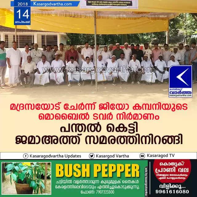 Keywords: Kasaragod, Mobile tower, Protest, News, Madrasa, JIO, Jio company's Mobile Tower construction near Madrasa; Jamaath committee protested