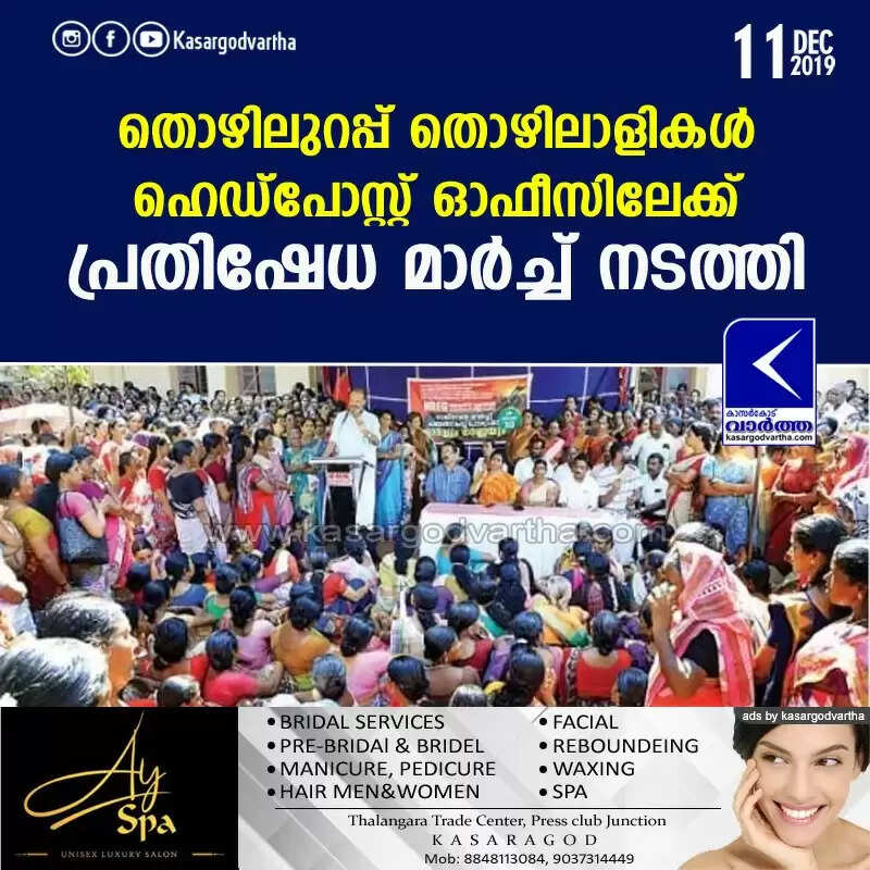 തൊഴിലുറപ്പ് തൊഴിലാളികള് ഹെഡ്പോസ്റ്റ് ഓഫീസിലേക്ക് പ്രതിഷേധ മാര്ച്ച് നടത്തി