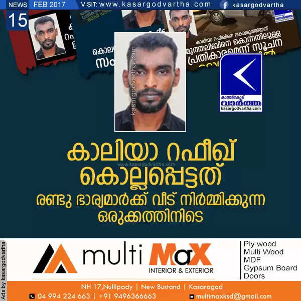 കാലിയാ റഫീഖ് കൊല്ലപ്പെട്ടത് രണ്ടു ഭാര്യമാര്‍ക്ക് വീട് നിര്‍മ്മിക്കുന്ന ഒരുക്കത്തിനിടെ