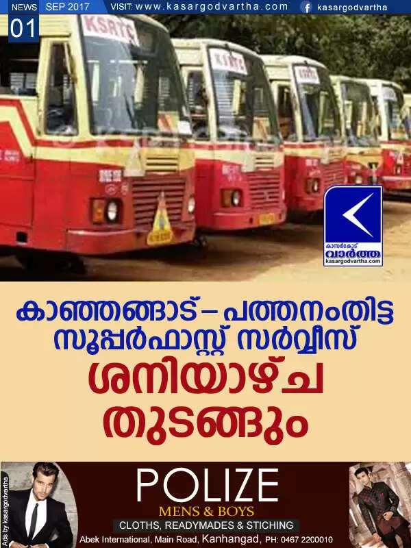 കാഞ്ഞങ്ങാട്-പത്തനംതിട്ട സൂപ്പര്ഫാസ്റ്റ് സര്വ്വീസ് ശനിയാഴ്ച തുടങ്ങും