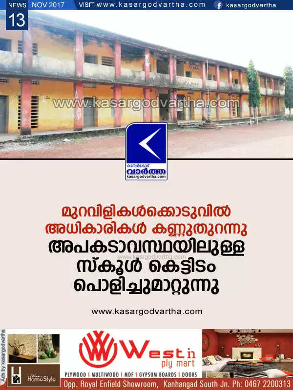 Keywords: Mulleria, Kasaragod, Kerala, News, School, Memorandum, PTA committee, Karadukka Govt. Vocational higher secondary school building demolishing works started.