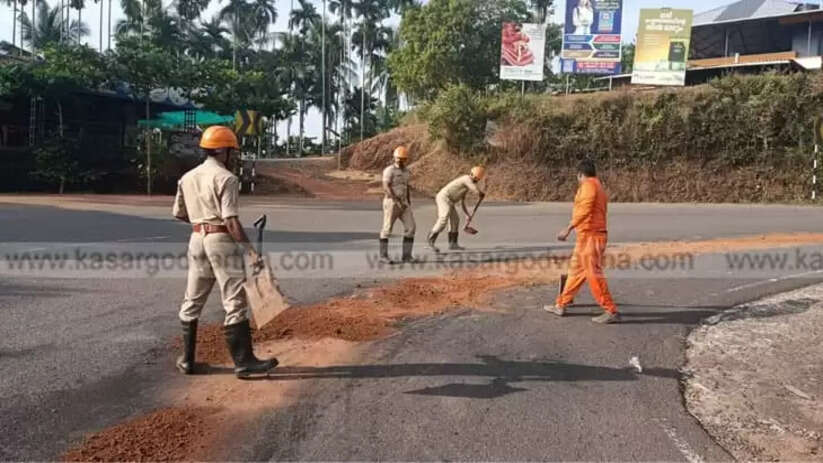 സംഭവം കണ്ട നാട്ടുകാർ ഉടൻ തന്നെ കാസർകോട് ഫയർ & റെസ്ക്യൂ സ്റ്റേഷനുമായി ബന്ധപ്പെടുകയും അപകടസാധ്യതയെക്കുറിച്ച് അറിയിക്കുകയും ചെയ്തു. വിവരം ലഭിച്ചതിനെ തുടർന്ന് അഗ്നിരക്ഷാസേനയുടെ സംഘം അതിവേഗം സ്ഥലത്തെത്തി. റോഡിൽ പടർന്നിരുന്ന ഡീസൽ മറ്റ് വാഹനങ്ങൾക്ക് അപകടം സൃഷ്ടിക്കുമെന്നതിനാൽ, മണൽ വിതറി സ്ഥിതി നിയന്ത്രണ വിധേയമാക്കി. ഈ ഇടപെടലാണ് സ്ഥലത്ത് കൂടുതൽ അപകടങ്ങൾ ഒഴിവാക്കിയത്.