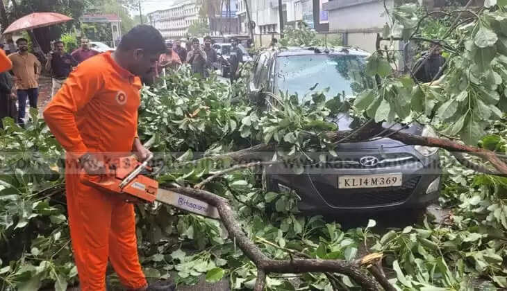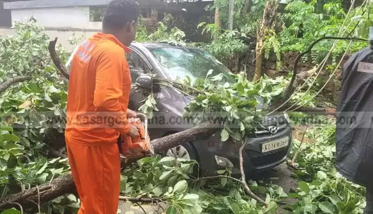 Article Summary: Tree falls on moving car in Kasaragod, driver miraculously escapes.