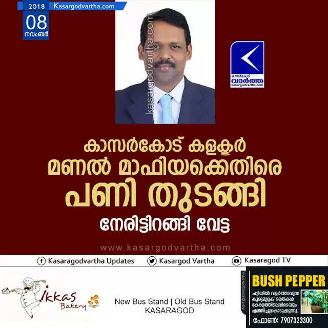 Keywords: Kasaragod Collector tighten inspection against Sand Mafia, Kasaragod, News, District Collector, Sand mafia.