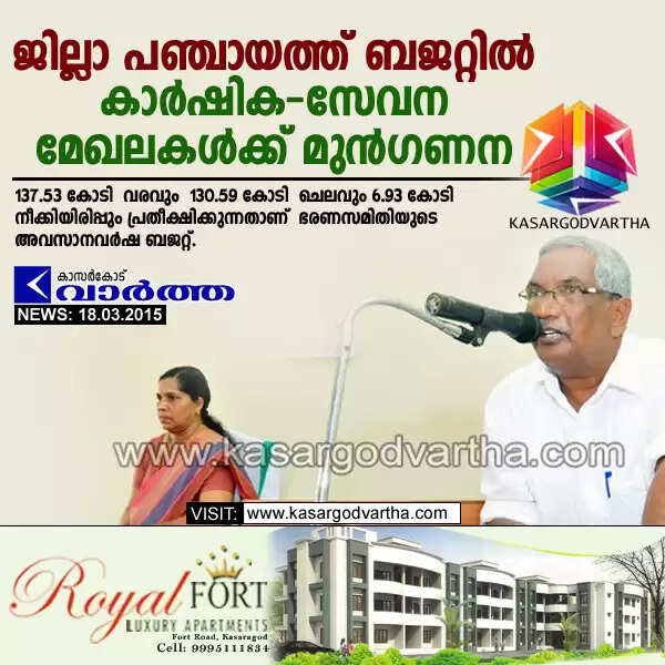 ജില്ലാ പഞ്ചായത്ത് ബജറ്റില് കാര്ഷിക-സേവന മേഖലകള്ക്ക് മുന്ഗണന