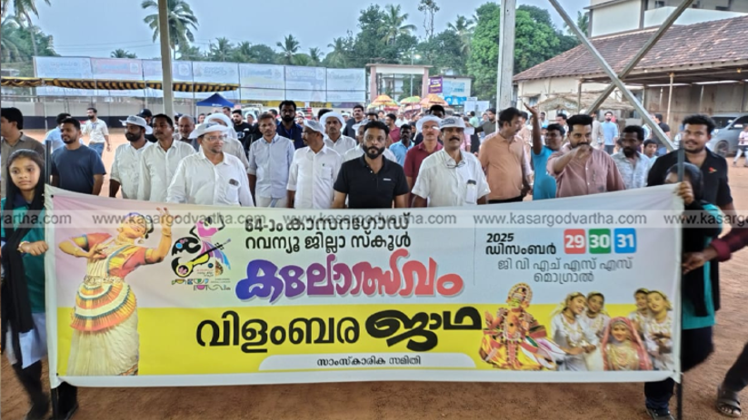 കാസർകോട് ജില്ലാ സ്കൂൾ കലോത്സവം: വർണാഭമായ വിളംബര ഘോഷയാത്രയോടെ തുടക്കം
