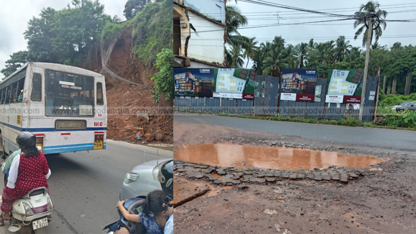 കാസർകോട് നഗരത്തിൽ റോഡുകൾ തകർച്ചയിൽ, ചന്ദ്രഗിരി പാതയിൽ മണ്ണിടിച്ചിൽ ഭീഷണി തുടരുന്നു