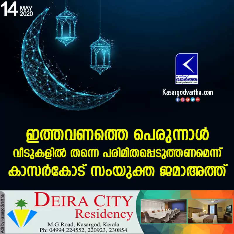 ഇത്തവണത്തെ പെരുന്നാള് വീടുകളില് തന്നെ പരിമിതപ്പെടുത്തണമെന്ന് കാസര്കോട് സംയുക്ത ജമാഅത്ത്